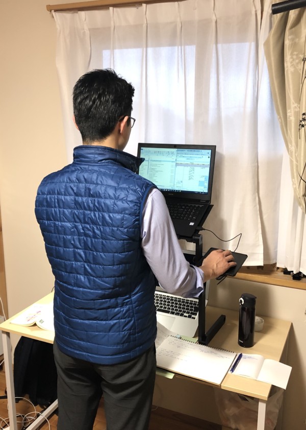 オフィスでの仕事が再開したら、オフィスにもスタンディングデスクを導入を提案したいくらいである。ほんとに。